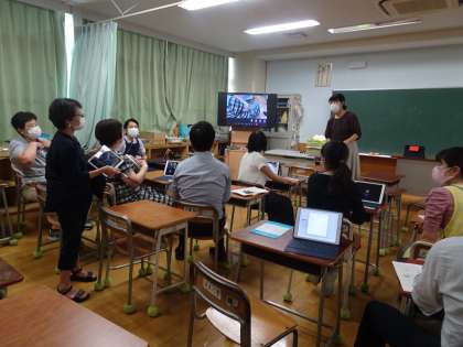 タブレット端末学校ルールも改めて配布します。9月1日は、オンライン授業の説明を、子どもたちにしていきます。各自のタブレットに、名前シールを貼ります。そして、使い方をレクチャーします。1年生は準備を学校で大人がサポートします。よろしくお願いいたします。