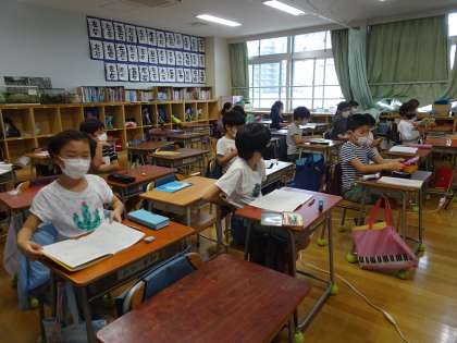 対面式の授業で、考える授業を計画しています。3年生以上は、ノートを自分の言葉で書く力をつけるために、書き慣れるということも重視しています。