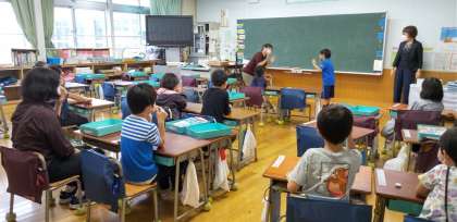 今日は、1年生の教室では、校長先生のスペシャルソーシャルスキルトレーニング。 アドジャン 目と目で挨拶。ルールを守って人と触れ合う心地よさ、自分から動く意志を働かせる心地よさを体験しました。