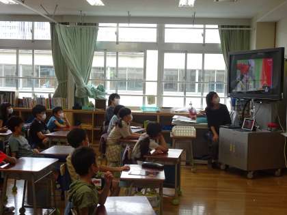 パラリンピックダイジェストの動画を見せました。福知山線の脱線事故で一命をとりとめた人、生まれつきの障害を抱えた人、事故で右腕を失った人、いろいろな境遇の中で挑戦し、乗り越えてパラリンピアンになった人々の輝く顔やコメントを流しました。生きる力につながってくれたらという願いです。