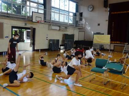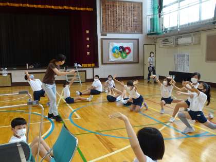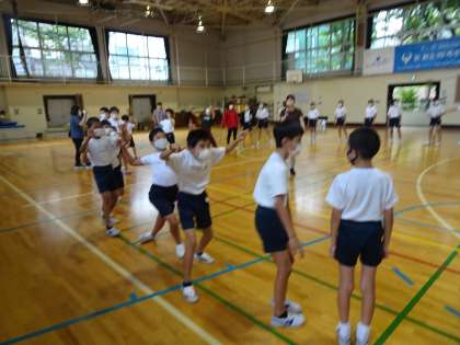 5年生も、生き生きと表現を楽しんでいました。身体を使って創造的に表現する練習です。体育的な表現、癒しの効果のある表現、劇に使える表現、いろいろ出てきました。