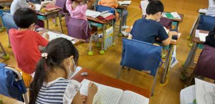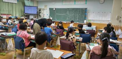 1年生は、国語です。ノートに自分の言葉で、読み取ったことを表現していました。よく考えて努力しています。成長を感じました。
