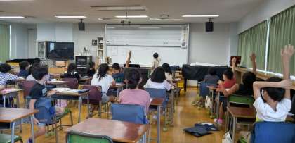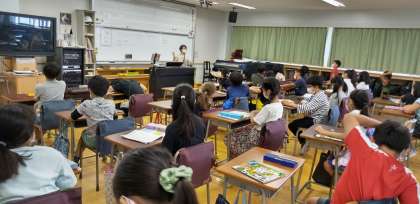 4年生は、音楽でした。気付いたことを発表する場面です。音楽は、奏でる、聞く、関心をもつ等感性を磨きます。