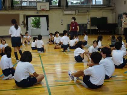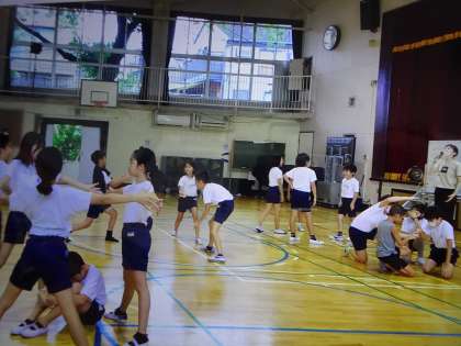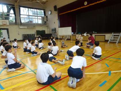 5年生も、ダイナミックに考えたボディーパフォーマンスを披露してくれました。楽しんでチームになってできることを探っていました。