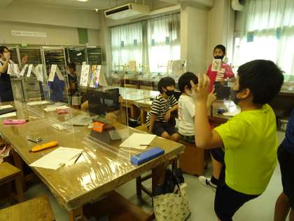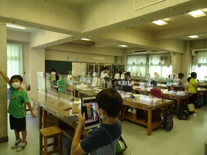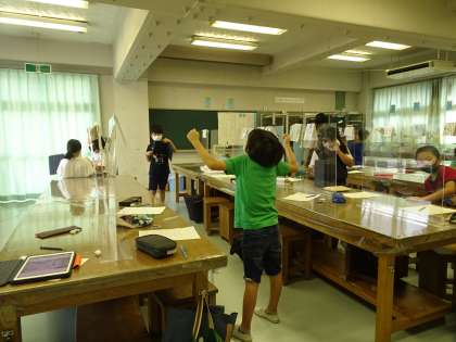 3年生の図工は、友達のポーズをタブレット端末で撮影するところから始まっていました。面白いポーズを考えて楽しむことができました。どのような作品になるか、楽しみです。