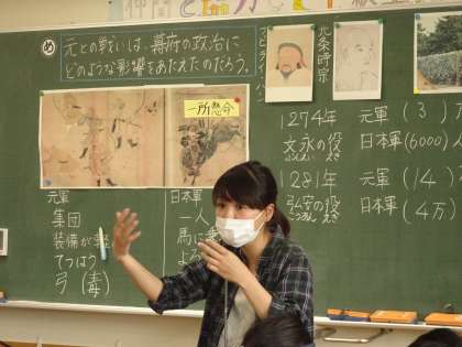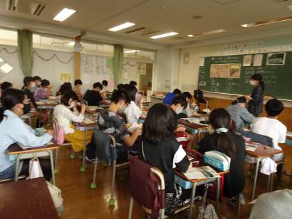 6年生は、歴史の学習です。元寇の影響について、時代の流れの中で考えていました。資料を見て、様々に想像することが歴史の面白さにつながります。