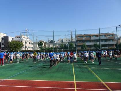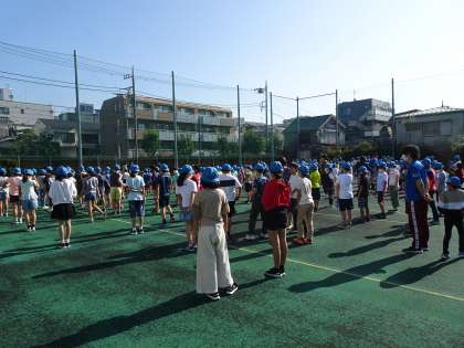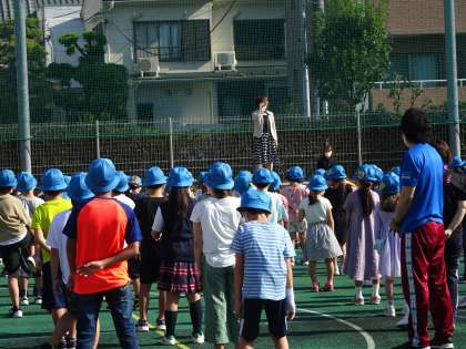 校庭で全校朝会(10/4)