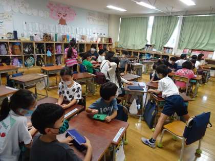 1,2年生は、さいころトークに取り組みました。楽しんで、お題について考え、グループで話を聞き合うことができました。ファミリーグループで、国語の言語活動を中心に、コミュニケーション能力をつけようとしています。