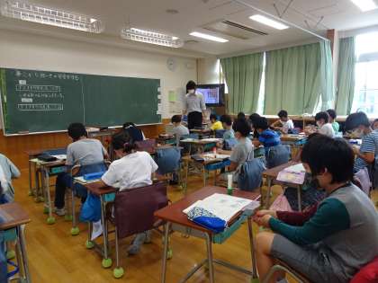 3年生は社会科、防災の観点も入れて、地域の勉強をしています。4年生は、算数の問題の習熟をしています。