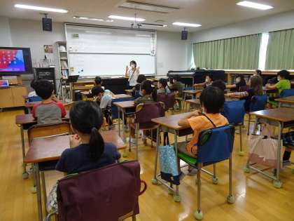 1年生は音楽室でいろいろなリズムを楽しみました。