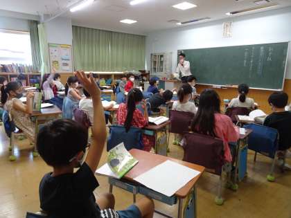 2年2組は、国語「お手紙」の読解です。このお話を一回読んで、全体から伝わるこのお話の言いたいことを想像しました。「友達」「優しい」というキーワードが出てきました。