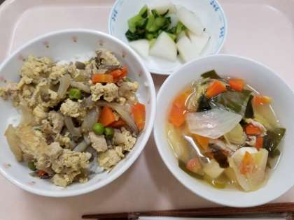 今日は親子丼。かつおのだしにたまねぎ、ごぼうの