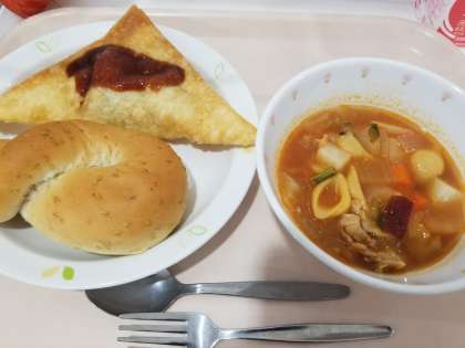 カレー粉で味をつけて、大きな餃子の皮で包んで