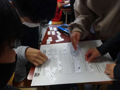 ファミリーグループで、『世界の国のお弁当づくり』をしています。栄養価も考え、ベストメニューを決める話し合いです。どの食材を使って、どの国のどのようなメニューを作るか、楽しそうに取り組んでいました。