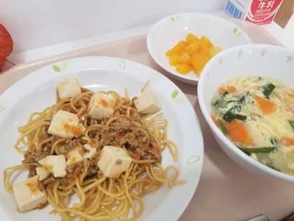 今日はピリ辛の麻婆あんを、ごはんではなく、焼きそば麺に