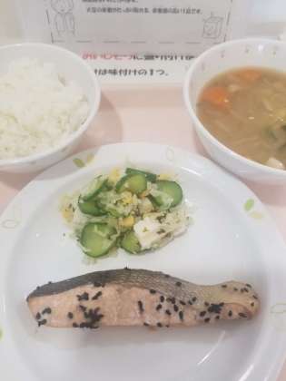 今日の秋鮭は脂がのっていました。ごまを