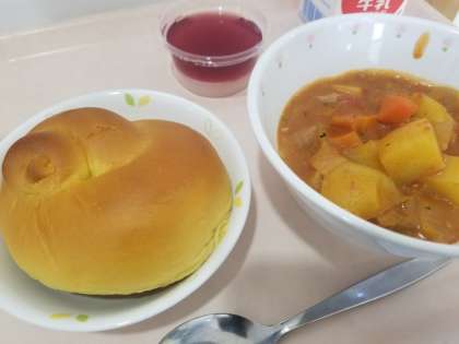 今日はかぼちゃの形のパンプキンパンにしました。