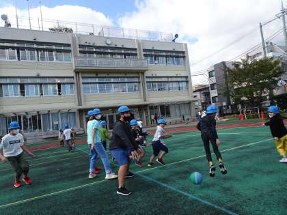 元気に遊ぶ子どもたちを見ていると元気が出ます。さわやかな秋の季節。空がとてもきれいです。