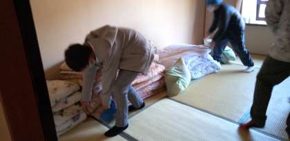 次のお客さんのために、部屋をきれいにしました。協力の意味は、働くことで理解できます。