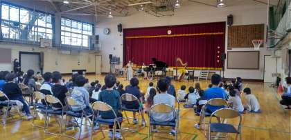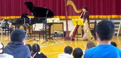 バイオリン、ピアノ、チェロ、グランドハープ、打楽器、バレエ、美しいほんものの音色と演技に、子どもたちは、引き込まれていきました。