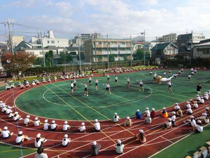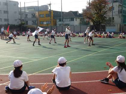 準備運動の後、応援合戦の練習も盛り上がりました。6年生は、小学校生活最後のスポーツフェスタです。