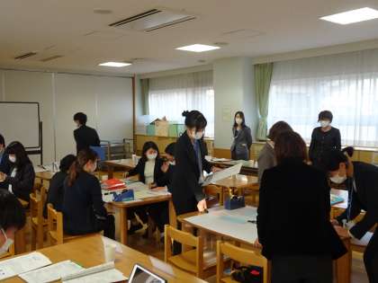 1年生の研究授業から、学び合いました。教師も学び合い、高め合う体験をしながら、授業力を向上させていきます。
