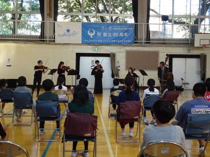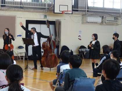 5年生の音楽鑑賞教室は、東京フィルハーモニー交響楽団の弦楽5重奏でした。バイオリン、ビオラ、チェロ、コントラバスの音色をライブで聴く時間でした。世田谷区の企画です。コロナ禍で、昨年度から、演奏家が学校に来てくださることになりました。
