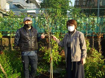 創立90周年記念植樹セレモニーを行いました。関山(かんざん)という八重桜を植えました。全校児童全員で、「90周年おめでとう」と声をそろえて言いました。90周年実行委員会委員長さんと、校長先生とで、テープカットをしました。その後、シャボン玉が飛びました。保護者の皆様、地域の皆様、児童全員と一緒にお祝いできて、本当に良かったです。