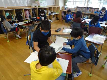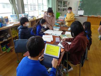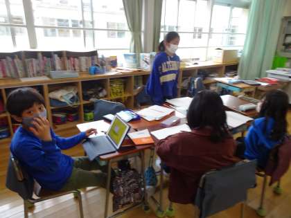グループで、社会科見学で行く場所について調べています。段々タブレット端末を使うことに慣れてきました。