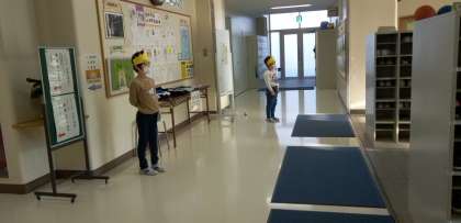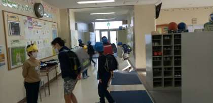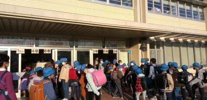 2日目です。大きな声で元気にあいさつしています。上級生もにこやかにあいさつを交わしました。