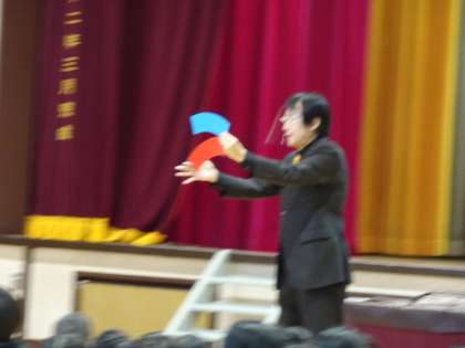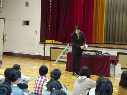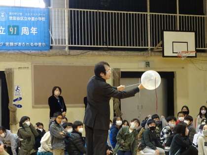 高学年は、目をキラキラさせて種を見破ろうと集中する姿がありました。〇を描いた画用紙から、本物のボーリングの球が出てきたのにはびっくりでした。