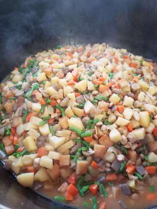 筑前煮には、寅年をうけて、トラ模様の豆、
