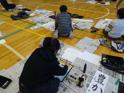 さすが5,6年生。個性豊かに、伸び伸びと書き上げました。自分で納得がいくまで練習する様子が微笑ましかったです。