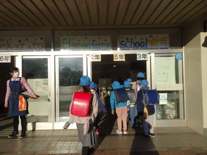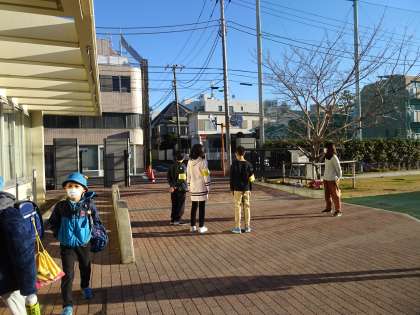 児童代表の運営委員や1年生の有志によるあいさつ運動をしています。手ごたえがあったようです。