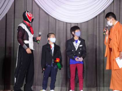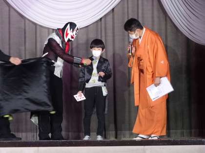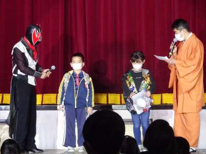 1年生、2年生、3年生の代表児童のマジック披露に拍手喝采でした。