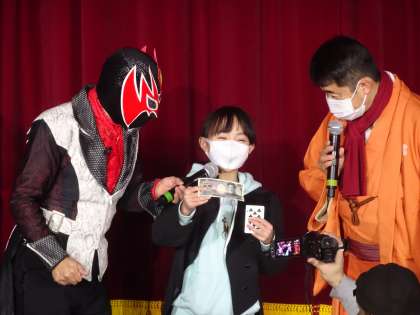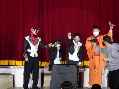 5年生は、さすがに上手でした。はじめのマジックは、お札とカードを使いました。お札をカードが貫通してしまいました。次は、コインが移動するマジックです。手元を移すカメラで観ましたが、仕掛けは謎のままでした。大成功でした。