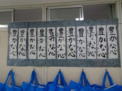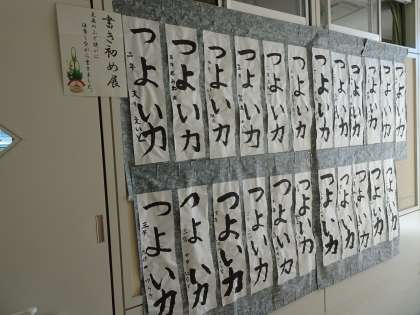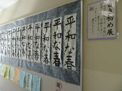 校長室前には、学年代表の作品が飾られました。児童は、互いに鑑賞することで、次年度への意欲を繋げていました。
