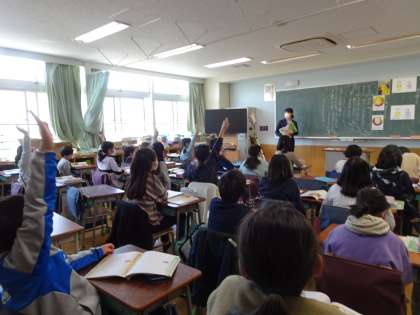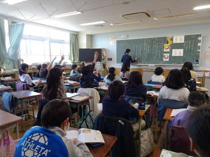 4年生『心と心のあくしゅ』(ほんとうの親切って何?)親切・思いやりとは何か、子どもたちが揺れを体験することで、「種をまく時間」だということを意識して授業を展開しました。