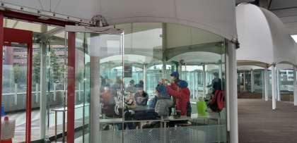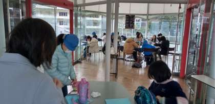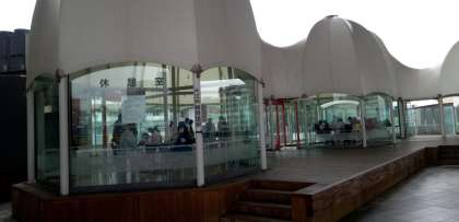 見学も終わり、昼食の時間です。屋根付きの場所で美味しいお弁当を食べました。