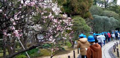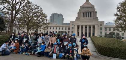 間近で見た国会議事堂は、子どもたちに何を伝えてくれたでしょうか。各県の木が並んでいます。梅の花が美しく咲いていました。