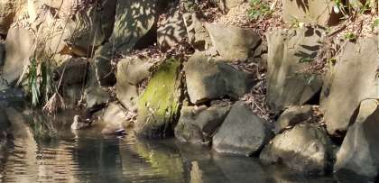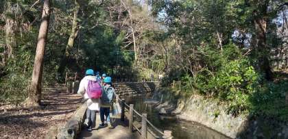 自然がいっぱいで、鳥の声も聞こえてきます。水もきれいで、かもも気持ちよさそうに泳いでいます。