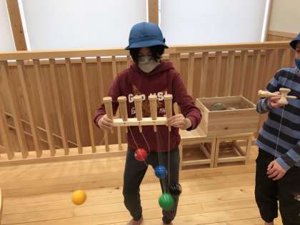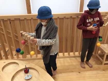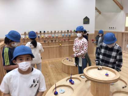おもちゃ美術館では、普段見たことのない木の玩具に夢中な子どもたちです。裸足で木のぬくもりを感じている子どもたちもいます。