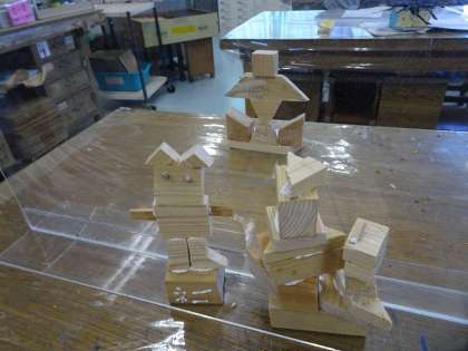のこぎりを使った授業です。素敵な作品が出来上がりました。のこぎりは、引く時に力が必要で、そこから木を切ることができる体験をしました。皆、自分のお気に入りの作品ができたようです。
