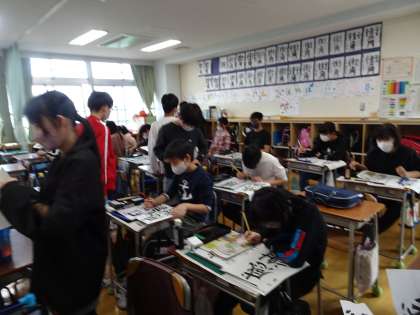 最後の書写の字は、『感謝』でした。個性が出て、とてもうまい字が続出しました。気合いが入っているようです。