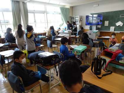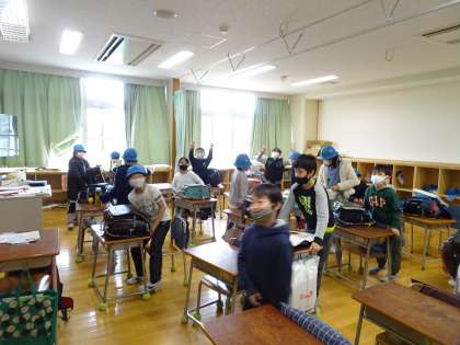 3年生の様子です。お楽しみ会も終わり、ピカピカにお掃除もできました。荷物の整理をして帰りのしたくをしています。黒板が美しくお掃除大賞をあげたい教室がありました。