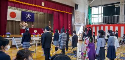 無事挙行できました。5年生のリコーダー演奏で入場する卒業生です。