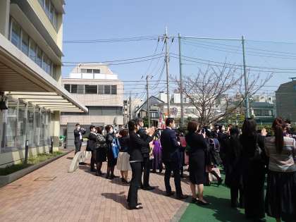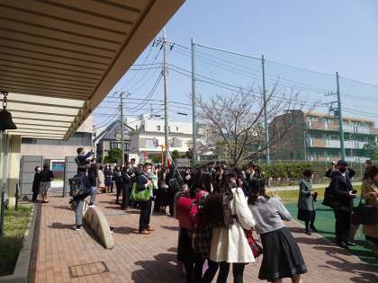 いよいよ送り出しです。中里小学校では、『門送り』という言葉を使っています。卒業生が巣立っていくのを皆で見送りました。戻ってきて写真を撮り合っている姿も微笑ましいものでした。