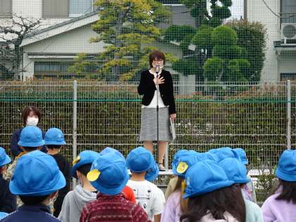 90周年記念樹『関山』という八重桜が見事に花を咲かせました。80周年の記念樹と一緒に語りたい話です。校長先生の話は、いのちの話でした。障がい者スポーツで、電動車椅子で頑張った教え子さんの話でした。