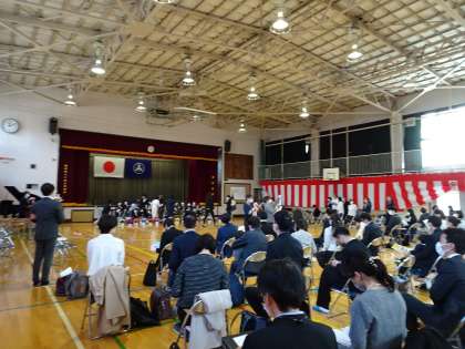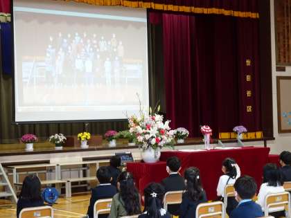 学校全体のこともこれからたくさん知ります。2年生のビデオで、校歌とメッセージが流れました。拍手が起こりました。
