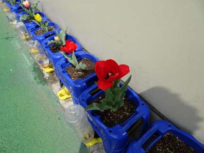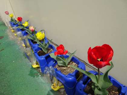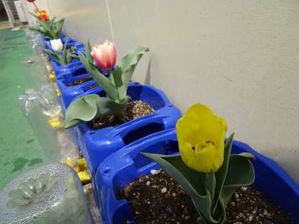 入学式の通路に置いたチューリップは、2年生の育てたものです。見事に咲きました。